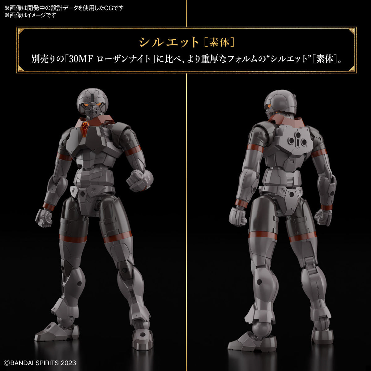 The Rosan Fighter hails from Bandai's "30 Minutes Fantasy (30MF)" model-kit series, where you can create your own fantasy job! This starter set includes the base Silhouette (body) as well as armor and weapons. The Silhouette is capable of flexible human-like actions, and can be used for just about any sort of fantasy job. The head and neck have movable axes, allowing you to tuck his chin in, or stick his face out! The shoulder joints are designed with great care to keep the body line intact, even in bold poses. The movable axes on the chest, torso and waist work in conjunction with the sliding mechanism at the base of the waist joint, allowing for natural poses. The Silhouette has a more substantial form than the separately sold Rosan Knight.