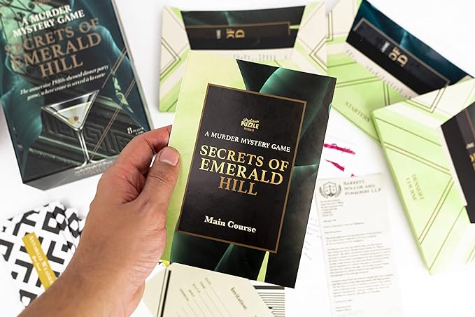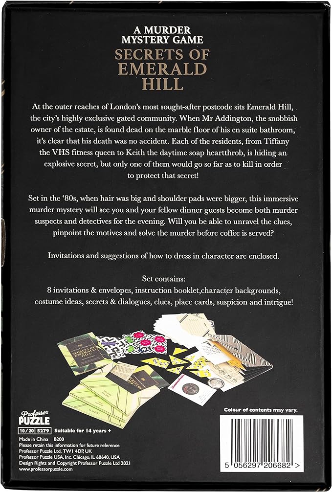 - Secrets of Emerald Hill - Unique 1980's themed murder mystery game by Professor Puzzle.