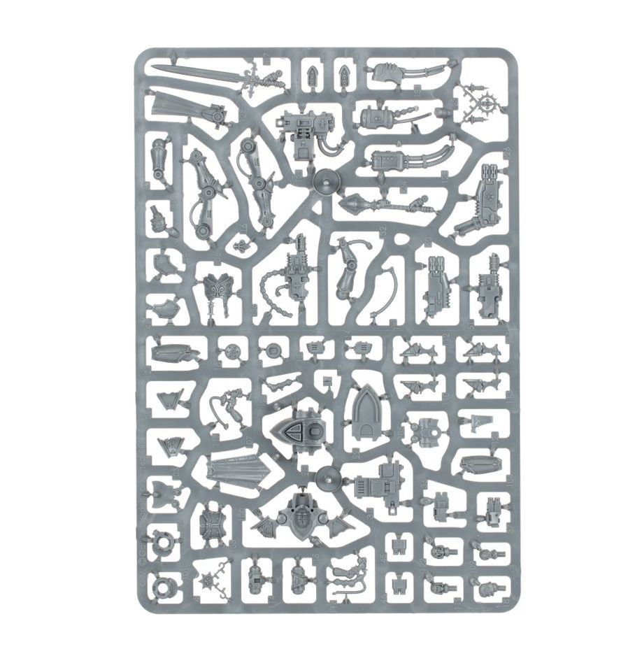 The kit is comprised of 179 plastic components, with which you can assemble three Paragon Warsuits, and is supplied with 3x Citadel 50mm Round Bases. This kit includes options to equip the warsuits with two different melee weapons, three different ranged weapons, two different carapace weapons, and includes helmeted and unhelmeted head options.