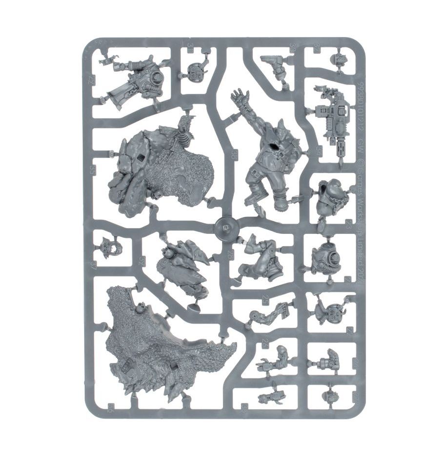 High Marshal Helbrecht is accompanied by two attendant thralls, one of which carries his powerful combi-melta, Ferocity, while the other wipes clean the Sword of the High Marshals. Helbrecht rouses the Black Templars who fight alongside him to great feats of valour, turning the battlefield around him into a bloody melee. High Marshal Helbrecht can be built with a choice of three different heads – two unhelmeted – and an optional impaled Ork at his feet.