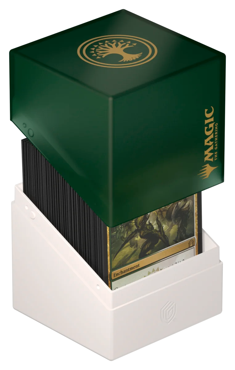 Ultimate Guard celebrates one of the most iconic and popular planes in Magic: The Gathering's history with the "Guild Summit" series: Ten elegant Boulder 100+ featuring the golden crest of each guild on the semi-transparent deck boxes, all with a silky soft-touch finish. The Boulder 100+ holds up to 100 double-sleeved cards, making it the perfect home for your two-color Commander deck! Don't miss out on the stunning Arkhive 1000+ Xenoskin from the "Guild Summit" series either, which is the perfect storage place for up to ten Boulder 100+.