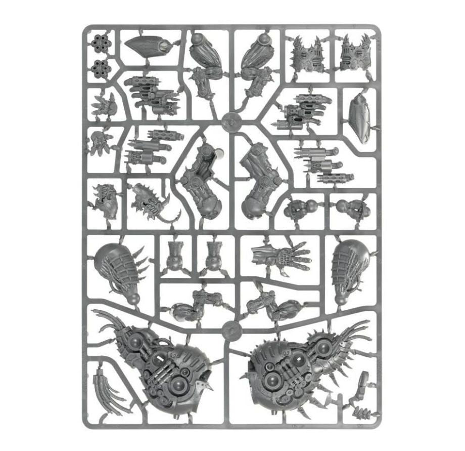 This multipart plastic kit builds a Forgefiend – a predatory daemon engine built for ranged annihilation. Its monstrous form combines warped metal and twisted flesh, covered with mechanical details such as vents, wires, cables, pistons, and segmented plates. The Forgefiend can be armed with a pair of heavy hades autocannons to spit a hail of shells, or unleash superheated blasts with a pair of ectoplasma cannons. The kit also offers a choice of two heads – one with snapping jaws, another with an in-built ectoplasma cannon.
