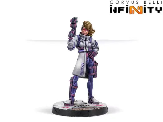 This box includes 4 miniatures: 1 PROXY Mk1 Engineer with Combi Rifle, 1 PROXY Mk2 Hacker, 1 PROXY Mk2 with MULTI Sniper Rifle, and 1 PROXY Mk.5 with Submachine Gun. The great versatility that Post-humans bring to your army list will make this box an ideal complement to your ALEPH Operations Action Pack.