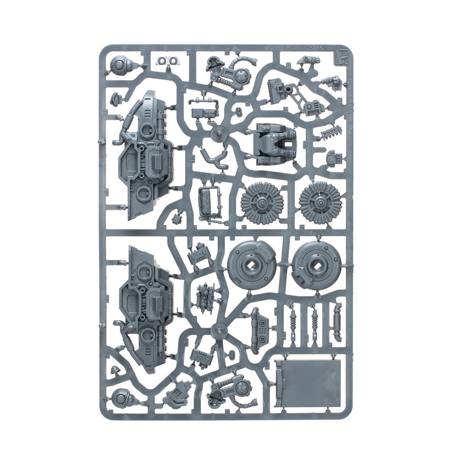The crew of the Kapricus Defender have six heads – two of which are Ironkin – to choose from, and the vehicle can be armed with a turret-mounted magna‑rail cannon or a HYLas rotary cannon. This miniature can alternatively be built as a Kapricus Carrier – a light transport vehicle.
