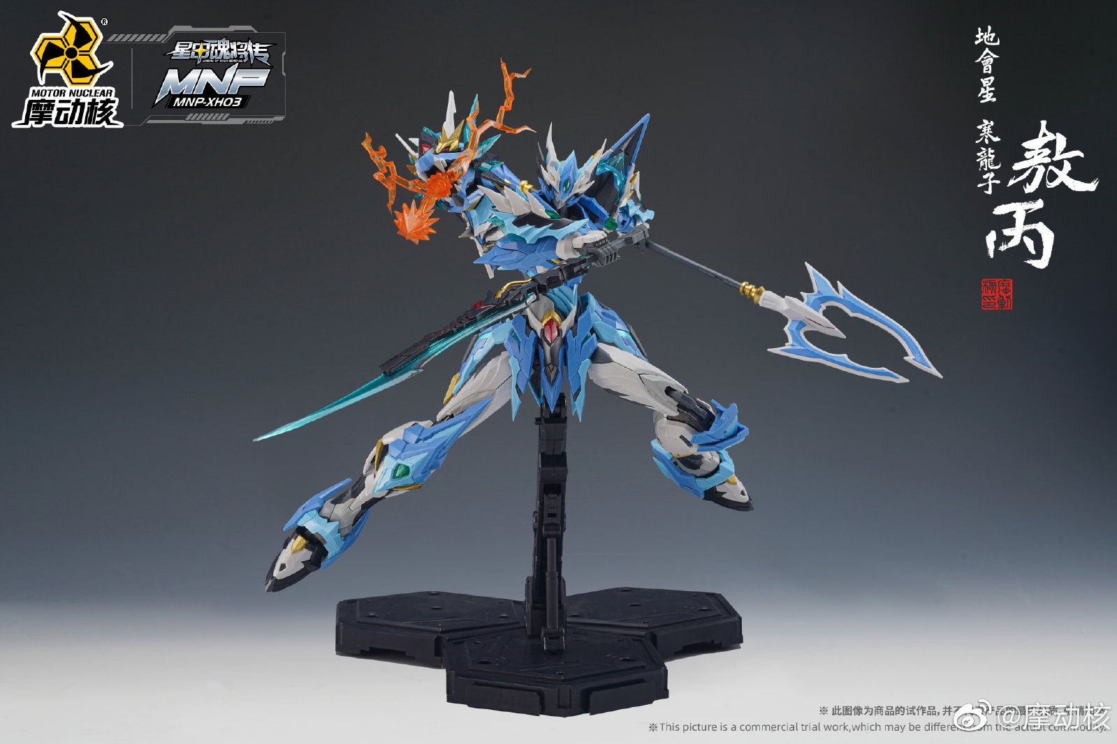 Motor Nuclear brings us an original mecha model kit based on the Chinese mythological character Aobing! Its sharp form emphasizes its fearlessness, and a combat support droid in the form of a blue dragon is also included! Order this mechanical warrior for your own collection today!