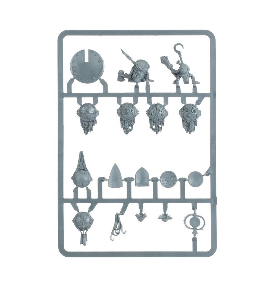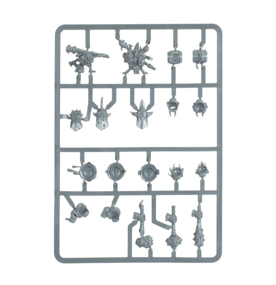This multi-part plastic set contains 110 components with which to build four Ironguts armed with mighty bashing weapons. The set comes with plenty of optional extras including armoured heads, and plenty of scavenged shields to protect them. It also includes enough components to build a Gutlord, a Rune Maw Bearer and a Bellower.