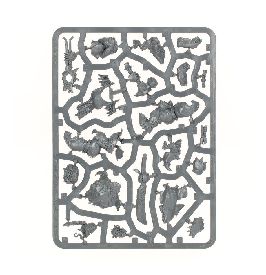 This multipart plastic kit builds Zoggrok Anvilsmasha, a famed orruk ironsmith accompanied by Klonk, his pet rockbrow squig. Zoggrok wades into battle with his skull-crushing basha, a weighty hammer that's good for pounding on metal and faces alike. He can also be armed with a set of sharp-toothed grunta-tongs, or a ward-smashing choppa that shatters protective charms. He wears a metalworking apron over his heavy armour, laden with tools, and even his jaw features a crude metal prosthetic of Zoggrok's own making.