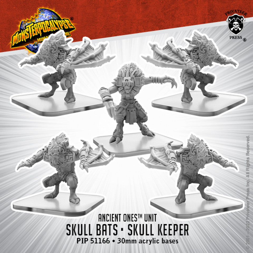 When Camazotz empowered his people, those with the darkest and most bloodthirsty natures became skull bats, attracted to the scent of blood. They collect the skulls of fallen enemies to bring their souls back to Camazotz. By contrast, skull keepers are Camazotz’s spies and scouts. They are his followers with the most cunning and malicious hearts. Together, the skull bats and skull keepers create a terrifying team.