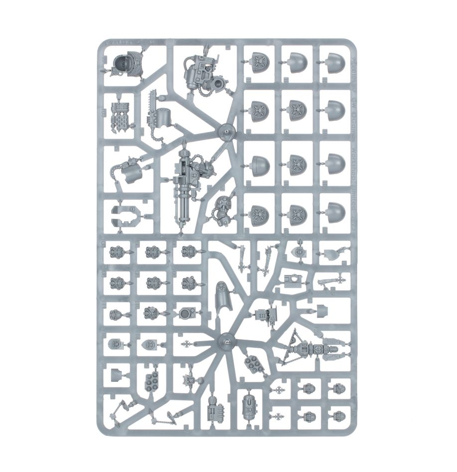 This versatile kit includes a teleport homer on its own base and offers plenty of cosmetic choices to customize your Terminators – interchangeable fist and gun arms, purity seals and battle honors, decorated tassets, a variety of tilting plates for the Sergeant, and enough bare heads or helmets for your whole squad.