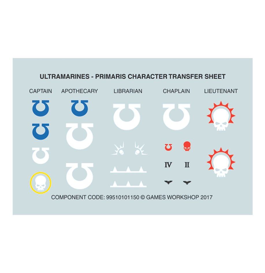 The Primaris Chaplain comes as 12 components, and is supplied with a Citadel 40mm Round base. The kit also includes a Space Marines Character Transfer Sheet, which features Captain, Chaplain, Librarian and Lieutenant iconography.