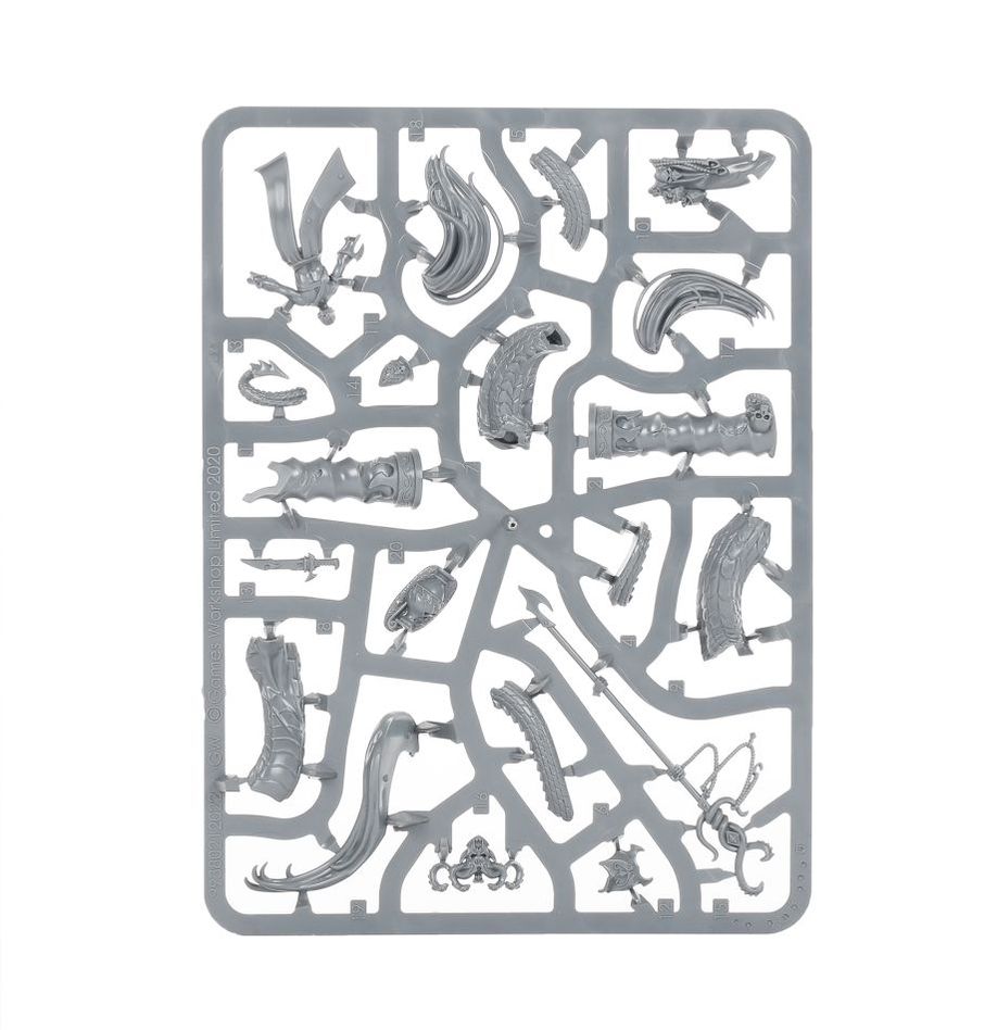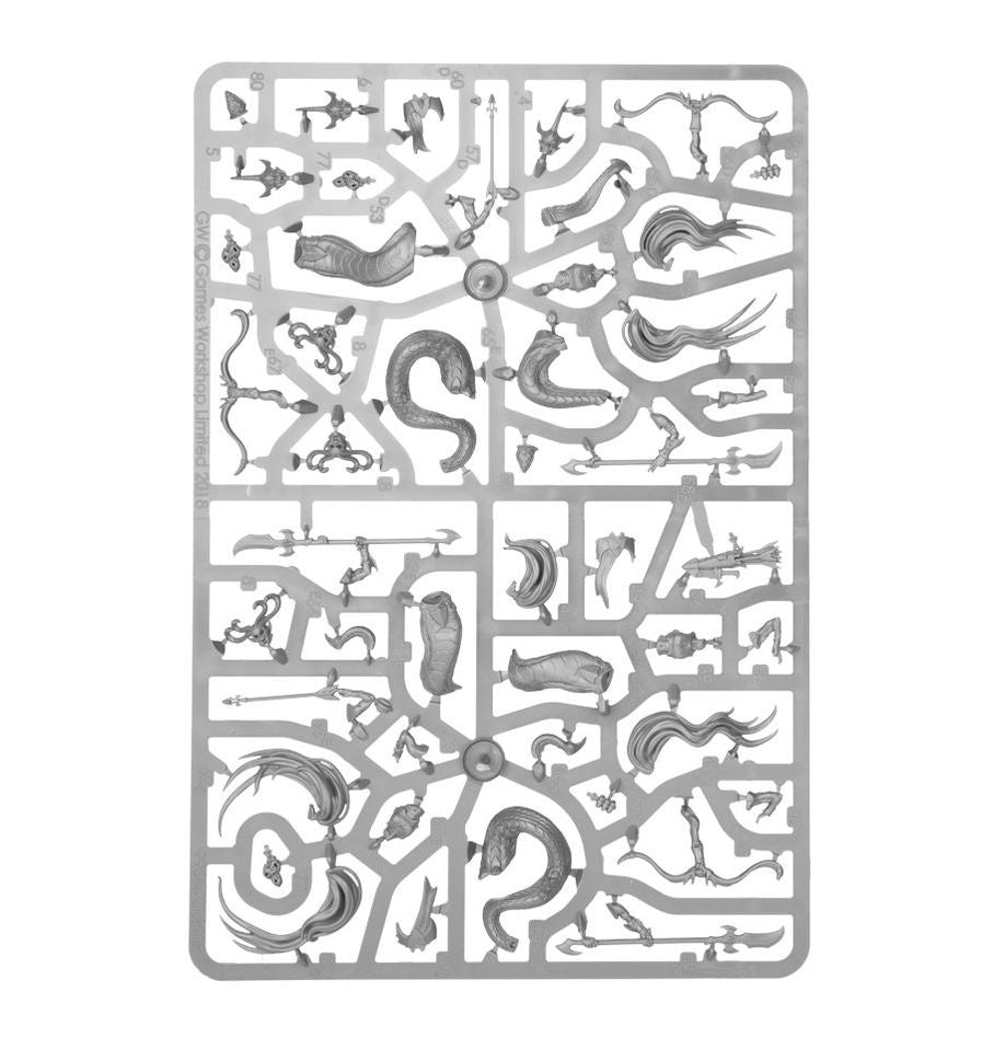 As deadly as they are graceful, the warlike aelves of the Daughters of Khaine seek to spill sacred torrents of blood in the name of their violent deity. Shaped by drops of Khaine's own blood, the elite Melusai Ironscale leads her slithering Blood Stalkers into battle. As their heartseeker arrows hiss overhead, Doomfire Warlocks fling howling bolts of dark magic and frenzied Witch Aelves leap into battle, eager to make an offering to the Bloody-handed God.
