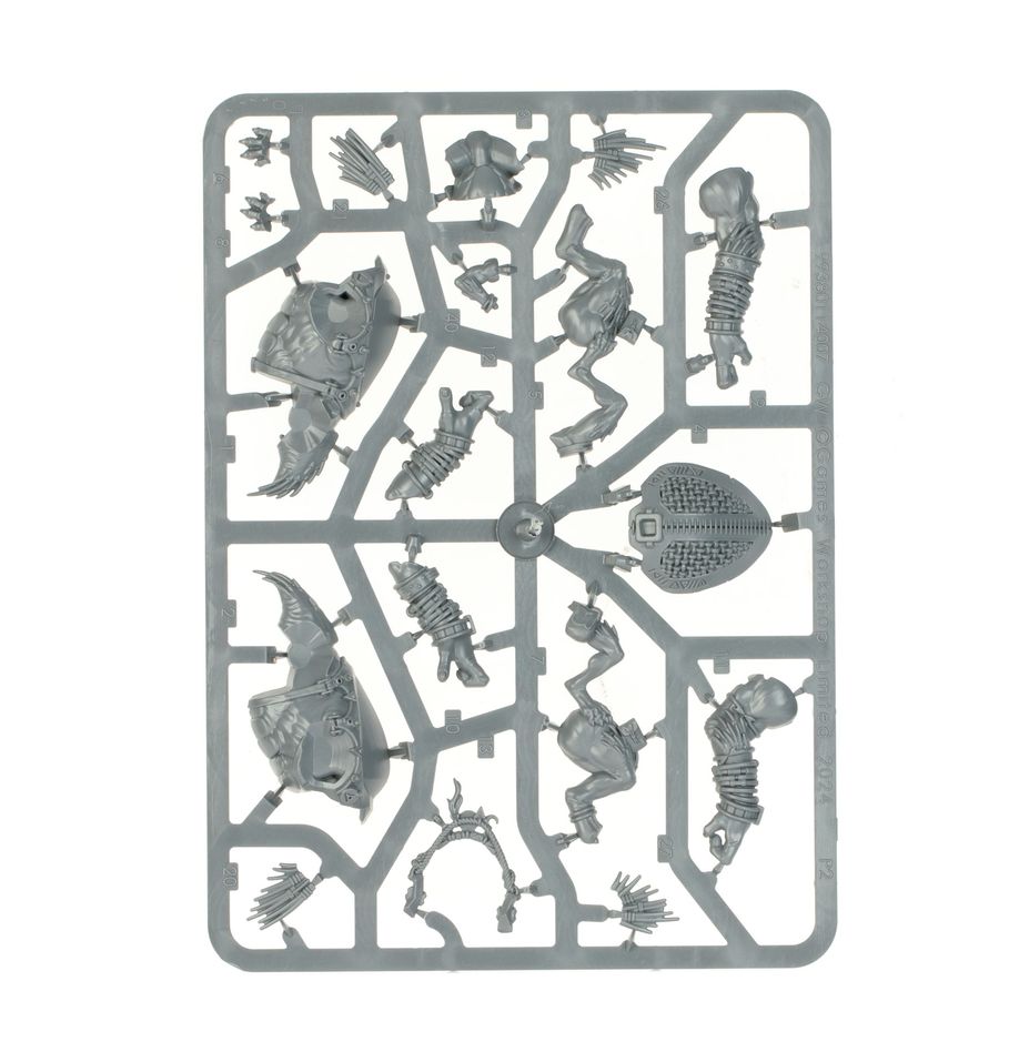 This multipart plastic kit builds one Krootox Rider, an elder Kroot kin-beast with a gunner perched atop its broad back. The Krootox carries one of two heavy weapons into battle – either a rapid-fire repeater cannon that can punch through armoured troops or even light vehicles with a barrage of charged rounds, or a tanglecannon that launches explosive bolas to shred entire hordes. When the fighting draws too close, it crushes foes into pulp with its massive, muscular fists.