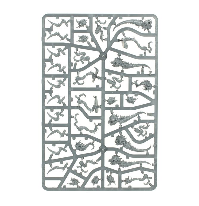 This multipart plastic kit builds 10 Hormagaunts, as well as a Ripper Swarm to expand your skittering tide. These aggressive creatures each feature different poses – some leaping, some stalking, and some lunging, as befits their predatory speed and role as close-quarters killers. These poses can be combined with a variety of different head designs, allowing you to keep your Hormagaunts looking varied no matter how big your swarm grows.