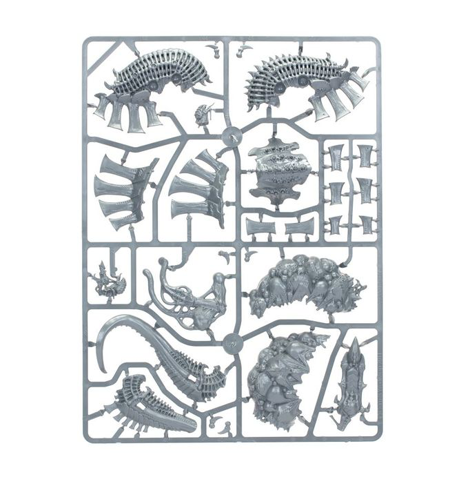This multi-part plastic boxed set contains 76 components and one Large Oval base with which to build one Tervigon or one Tyranid Tyrannofex.