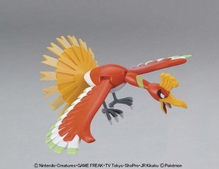 This simple snap-fit plastic kit set allows modelers to build a slightly articulated 10cm Ho-Oh. All parts come molded in color and a sheet of stickers is provided for detail so no painting is required. A display base with stand is included. Includes exploded-view pictorial-type instructions, with notes in Japanese.