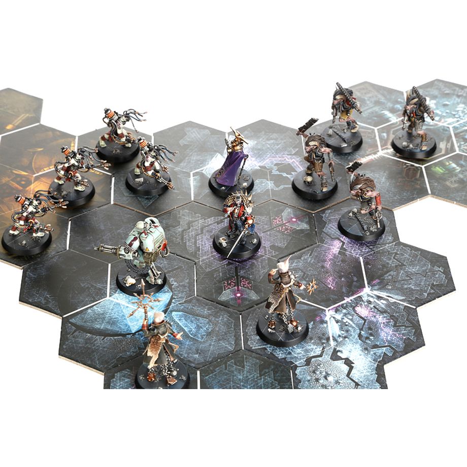 In Warhammer Quest Blackstone Fortress, you and your friends take on the role of a group of disparate explorers delving into the labyrinthine halls of a vast and ancient space station. Only by working together and balancing your strength and skills can you hope to survive. With each expedition, you will discover powerful archeotech and learn more of the Blackstone Fortress’ closely guarded secrets, including, perhaps, the location of its greatest treasure. The game can be played solo, or with up to 4 friends, with the fifth player controlling the hostiles. At the end of each expedition, the players return to the nearby port city of Precipice to rest, recuperate, and trade their loot for resources that will aid in their next adventure.