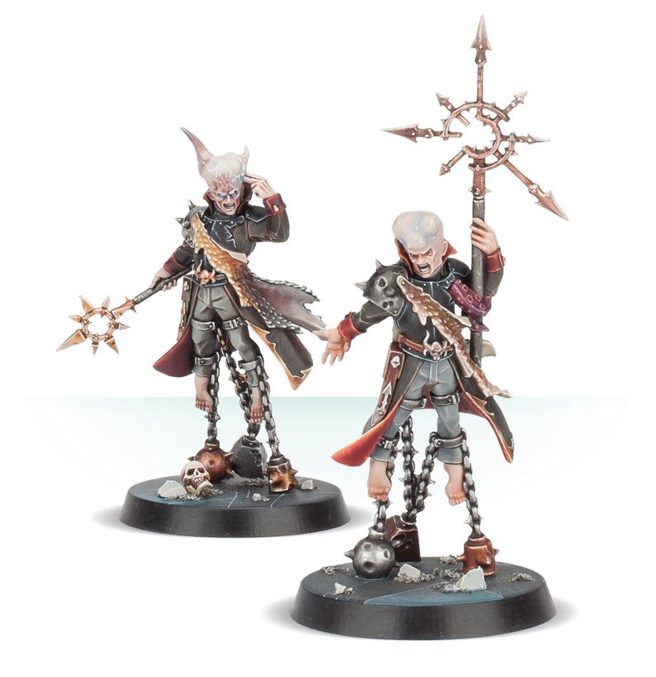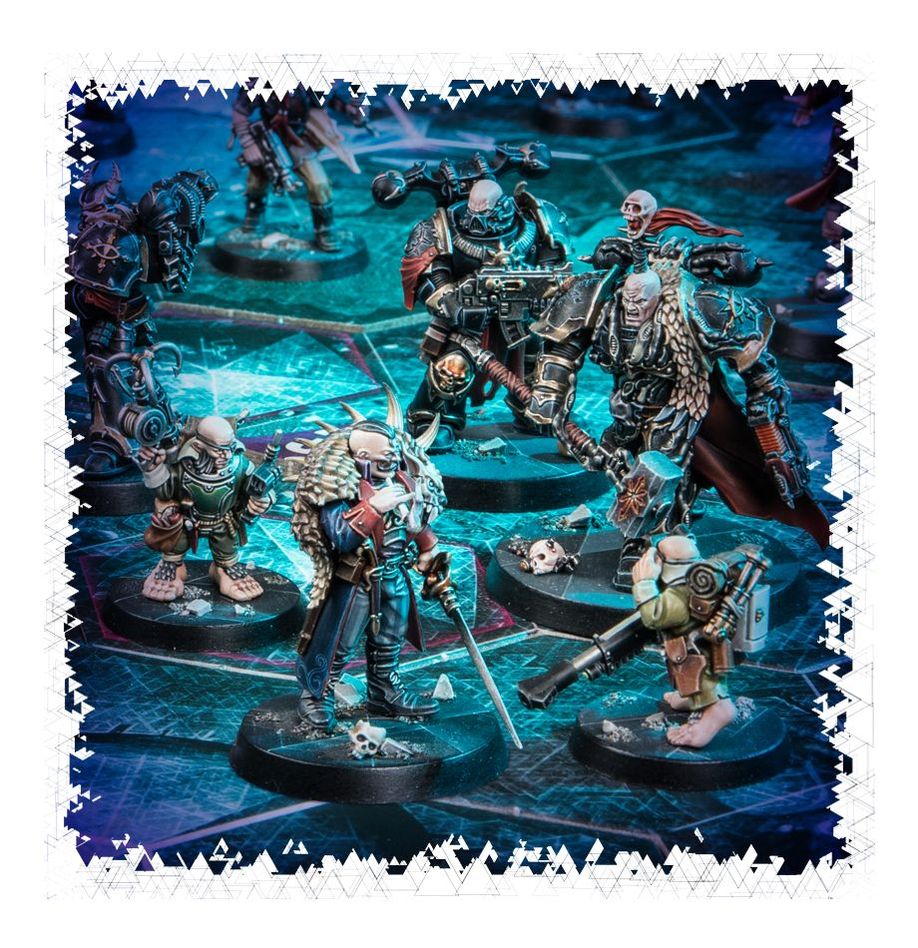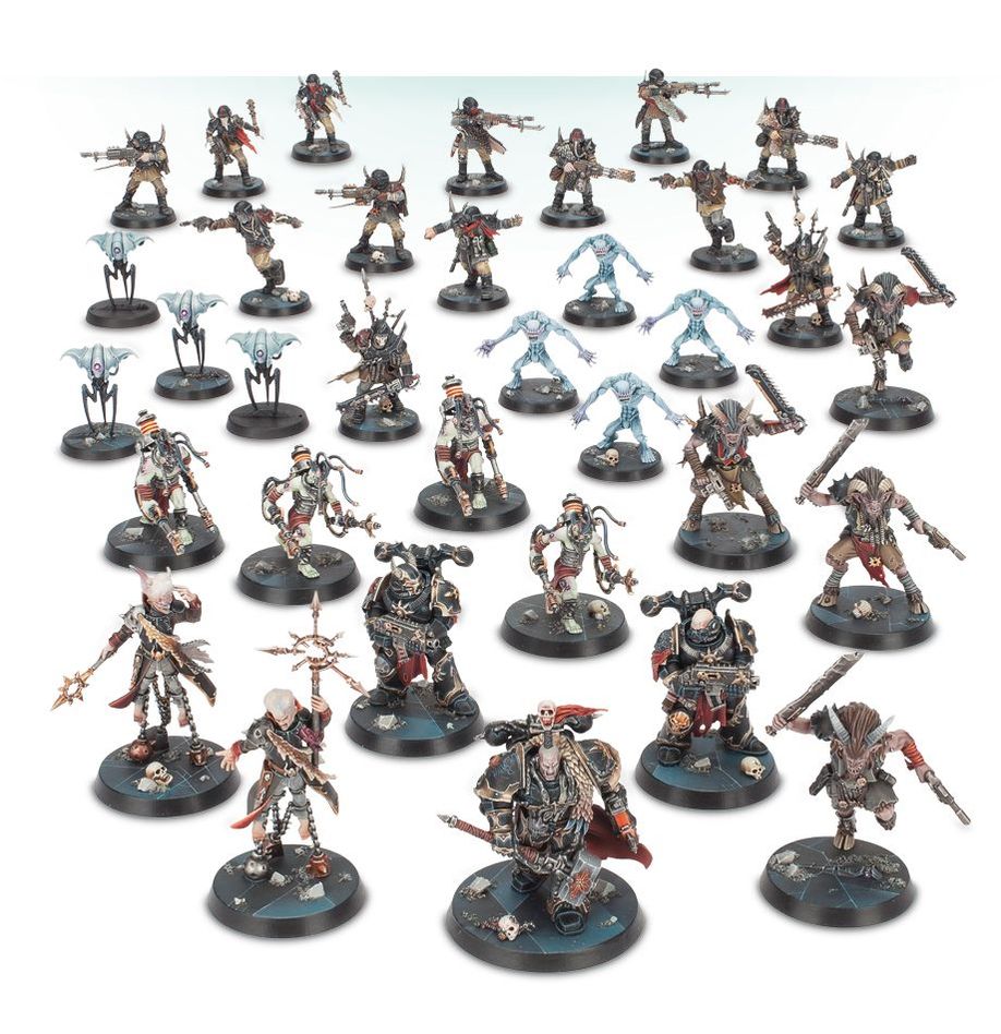 - 35 Hostiles in grey plastic: Obsidius Mallex, Chaos Lord; 2 Chaos Space Marines; 4 Chaos Beastmen; 4 Ur-Ghuls; 4 Negavolt Cultists; 2 Rogue Psykers; 4 Spindle Drones and 14 Traitor Guardsmen.