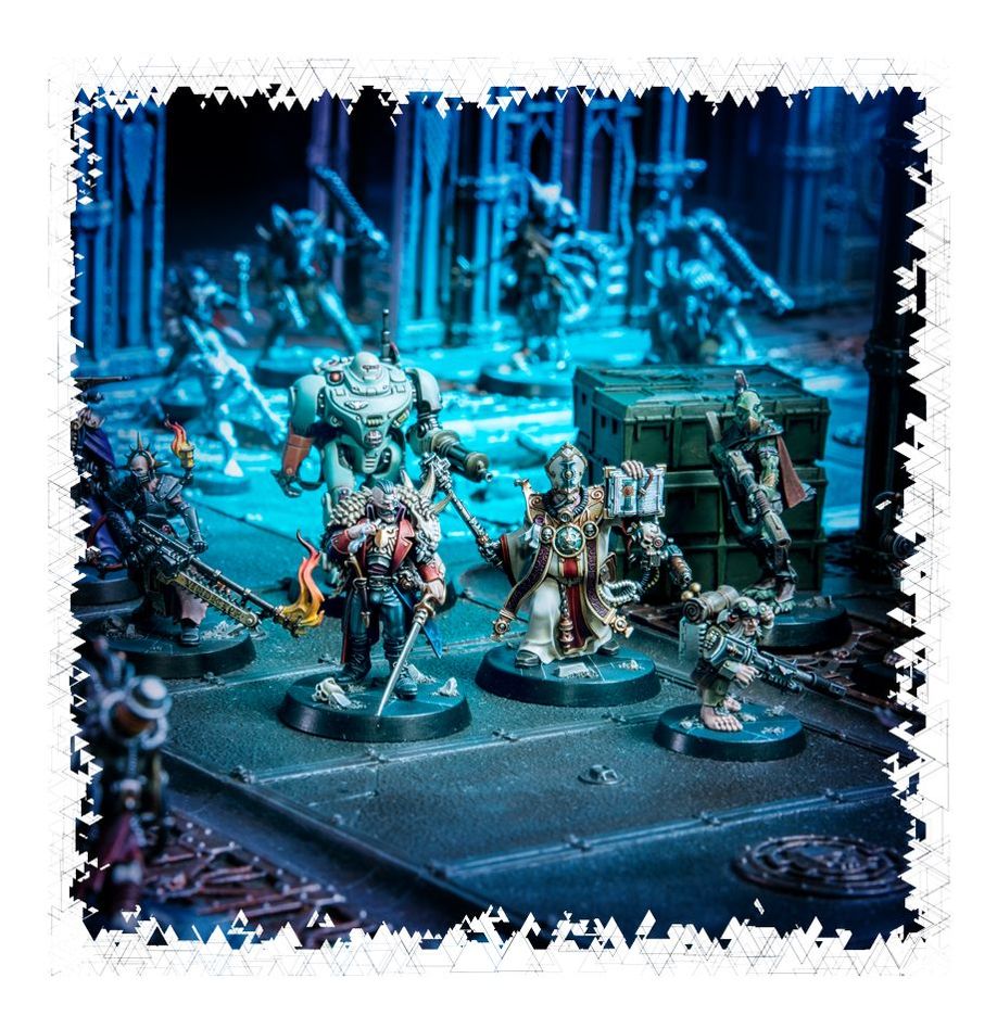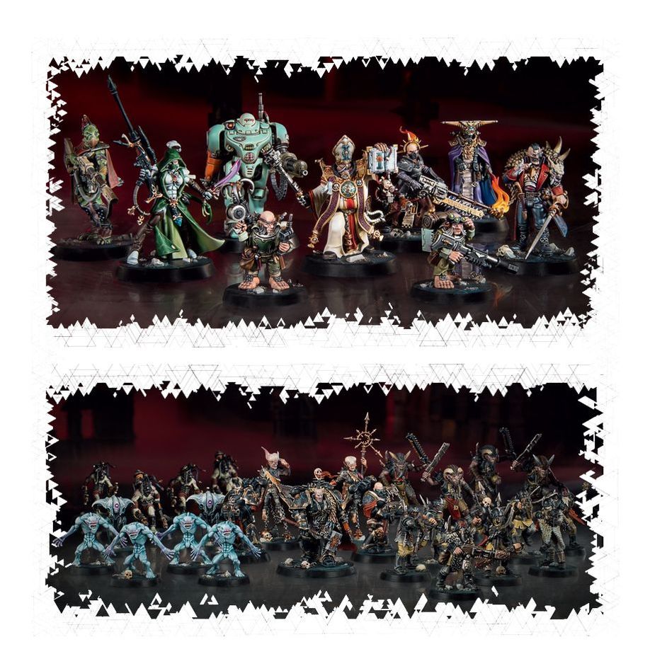 - 9 Explorers in red plastic: Janus Draik, Rogue Trader; Taddeus the Purifier, Ministorum Priest; Espern Locarno, Imperial Navigator; Pious Vorne, Missionary Zealot; UR-025, Imperial Robot; Dahyak Grekh, Kroot Tracker; Amallyn Shadowguide, Asuryani Ranger and the Ratling Twins, Rein and Raus;