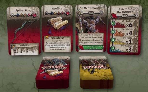 A new challenge for the Survivors is the Horde. It represents a growing group of Orc zombies that are ready to enter the board in an unexpected location and ambush the Survivors. As zombie cards with the Horde symbol are drawn, one extra zombie miniature of the same type is set aside, collectively forming the Horde. They will be locked into place until an “Enter the Horde!” card is drawn, spawning the Horde on the board. Any Survivor caught on their own near this roving menace would best beat a hasty retreat.
